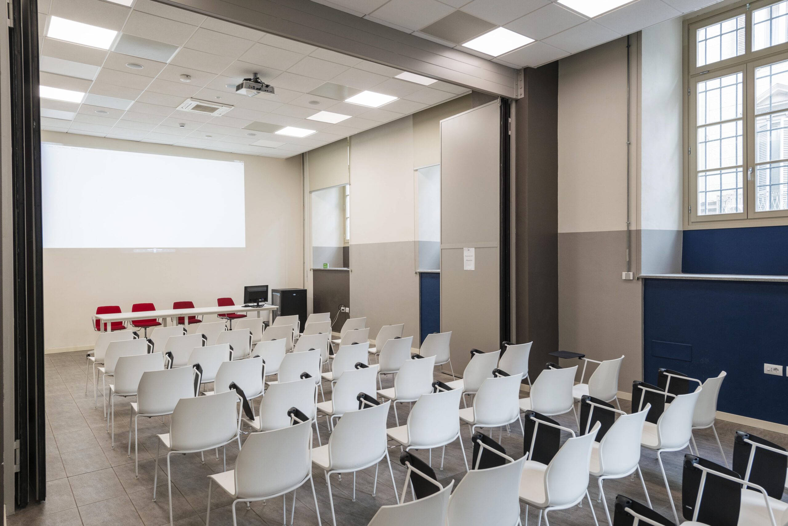 Ideale per l’organizzazione di convegni, presentazioni, conferenze stampa e rassegne cinematografiche. È dotata di pc di sala, wi-fi, impianto di condizionamento, microfoni da tavolo, impianto audio e video.